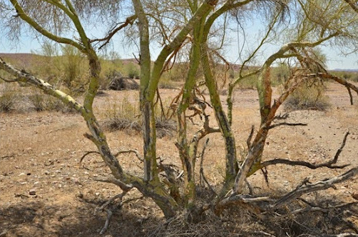 Palo verde tree dying from burro feeding damage.